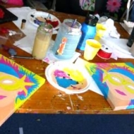 De meiden kunnen direct beginnen met het schilderen van het ogenmasker, het uitzoeken van decoratie-